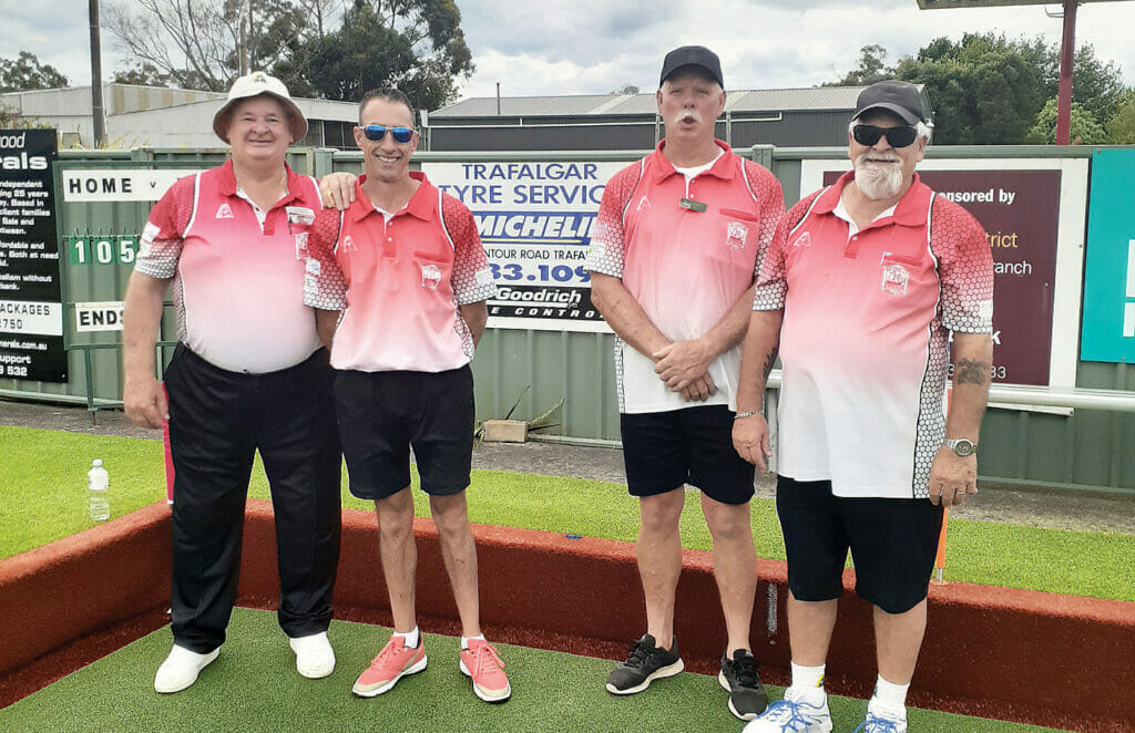 Ken Capper and his team of Tim Anderson, Danny Bryant and Jim Wilson have been successful in winning this year’s Men’s Fours Championship at Trafalgar Bowls Club, with a solid win over Mal Clymo and his team of Peter Watson, Tony Dawson and Peter Dart; 21 shots to 13.