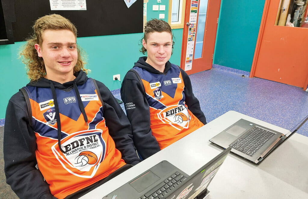 - Keeping it local with their Elinbank & District Football League jerseys are Blake White and Brodie Fleming.