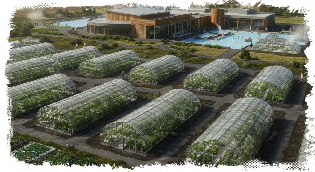 Among the agricultural hot houses would be spas and baths for locals and international visitors to enjoy.