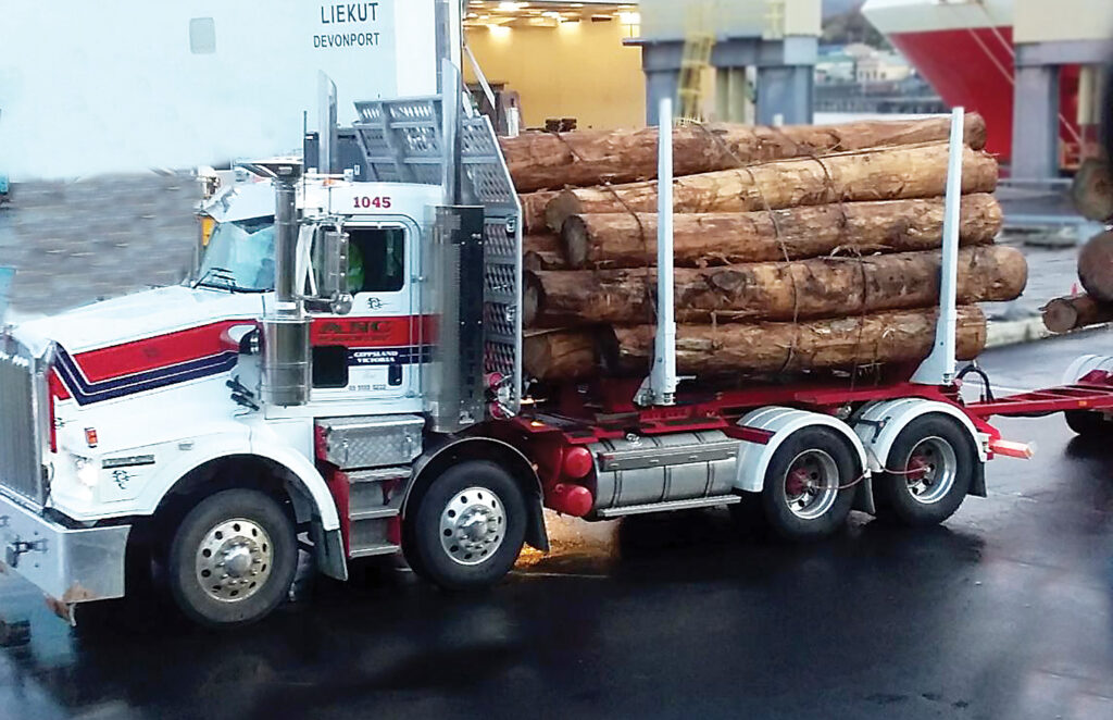 Hundreds of truck-loads of logs are coming across Bass Strait on the Spirit of Tasmania and the Searoad Mersey. As many as six log trucks have been on the Spirit at any one crossing and that is causing some frustration as trucks are crowding out tourist cars and campervans and the Tasmanian tourism industry isn’t happy with that.