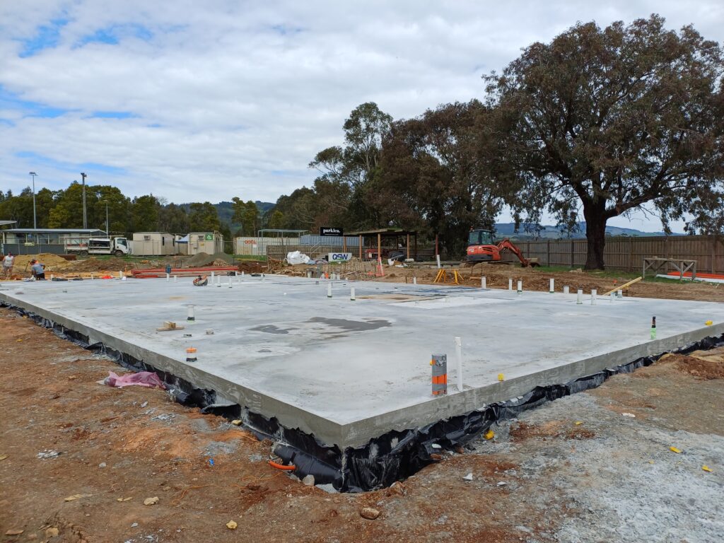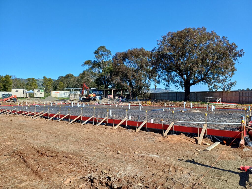 Construction is well underway for the new sporting pavilion at Yarragon’s Dowton Park. Following demolition of the existing outdated facility, a concrete slab has been poured, and both the structural steel and lightweight framing are now in place. Preparations are also underway for roof truss installation.