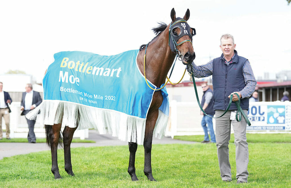 - Sharper in the mounting yard with Mick Templeton after securing victory in the Moe Mile. (Photo: Scott Barbour/Racing Photos)
