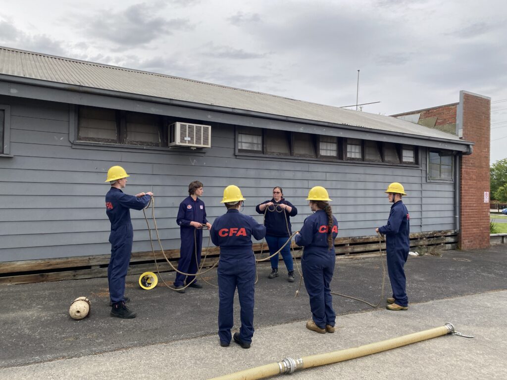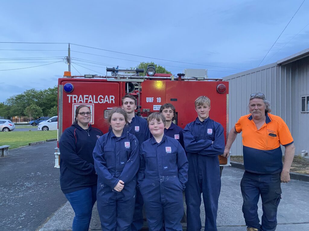 On the first and third Thursday of every month excluding school holidays, the junior fire brigade under the junior volunteer development program, meet at Trafalgar fire station to learn about fire safety and develop their skills as junior firefighters.